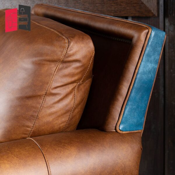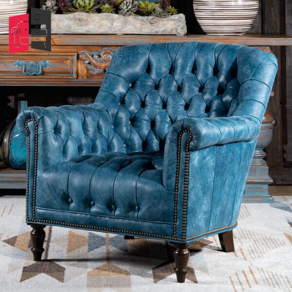 Modern Vannes Solid Wood Blue Leather Lounge Chair