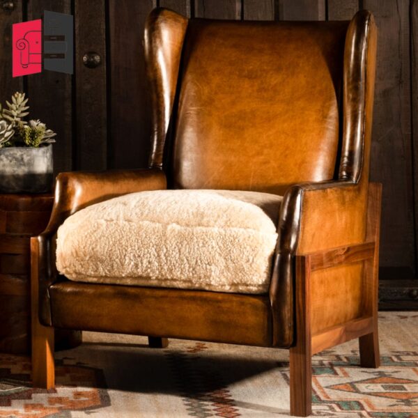 Modern Vannes Solid Wood Brown Saddle Leather Chair