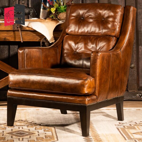 Modern Vannes Solid Wood Brown Lucchese Leather Chair