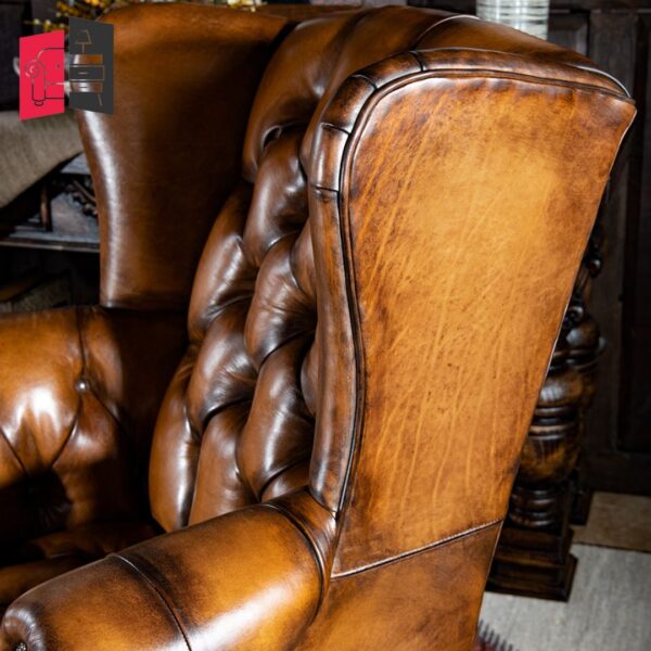 Modern Vannes Solid Wood Brown Leather Boot Stitch Chair