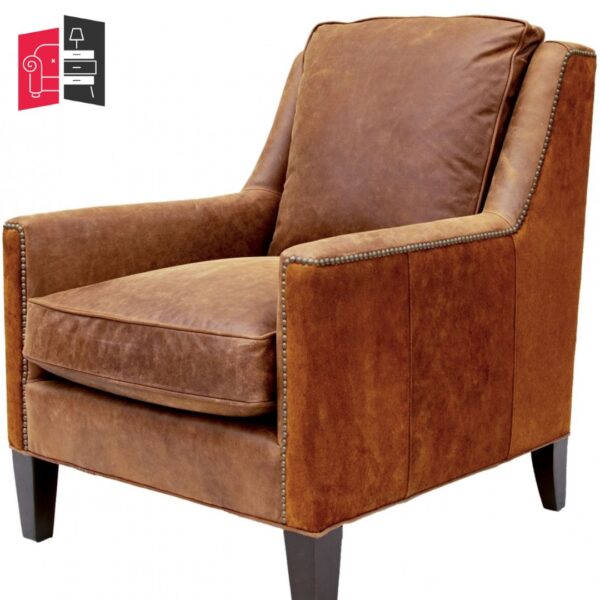 Modern Vannes Solid Wood Brown Keystone Leather Chair