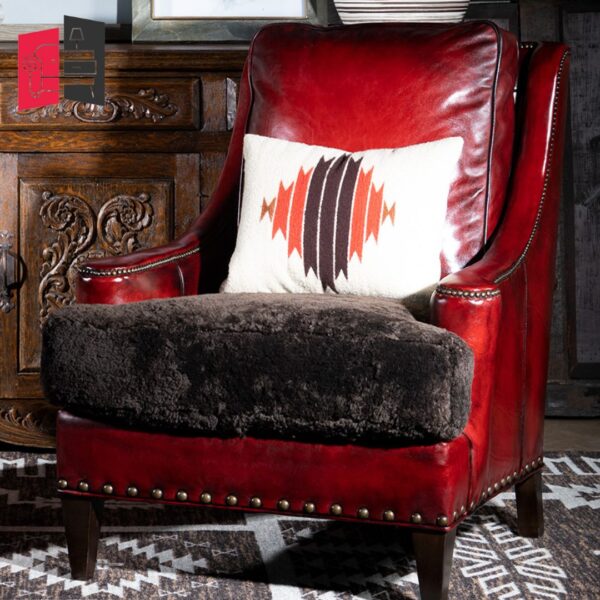 Modern Vannes Solid Wood Red Rock Leather Chair