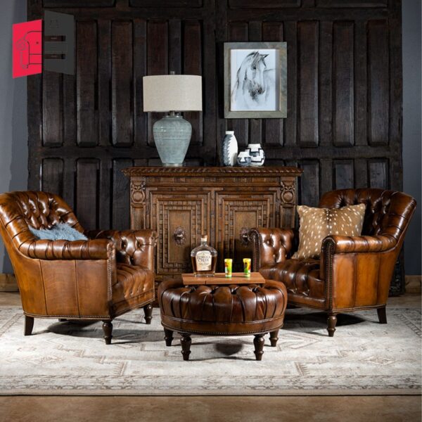 Modern Vannes Solid Wood Brown Tufted Leather Chair
