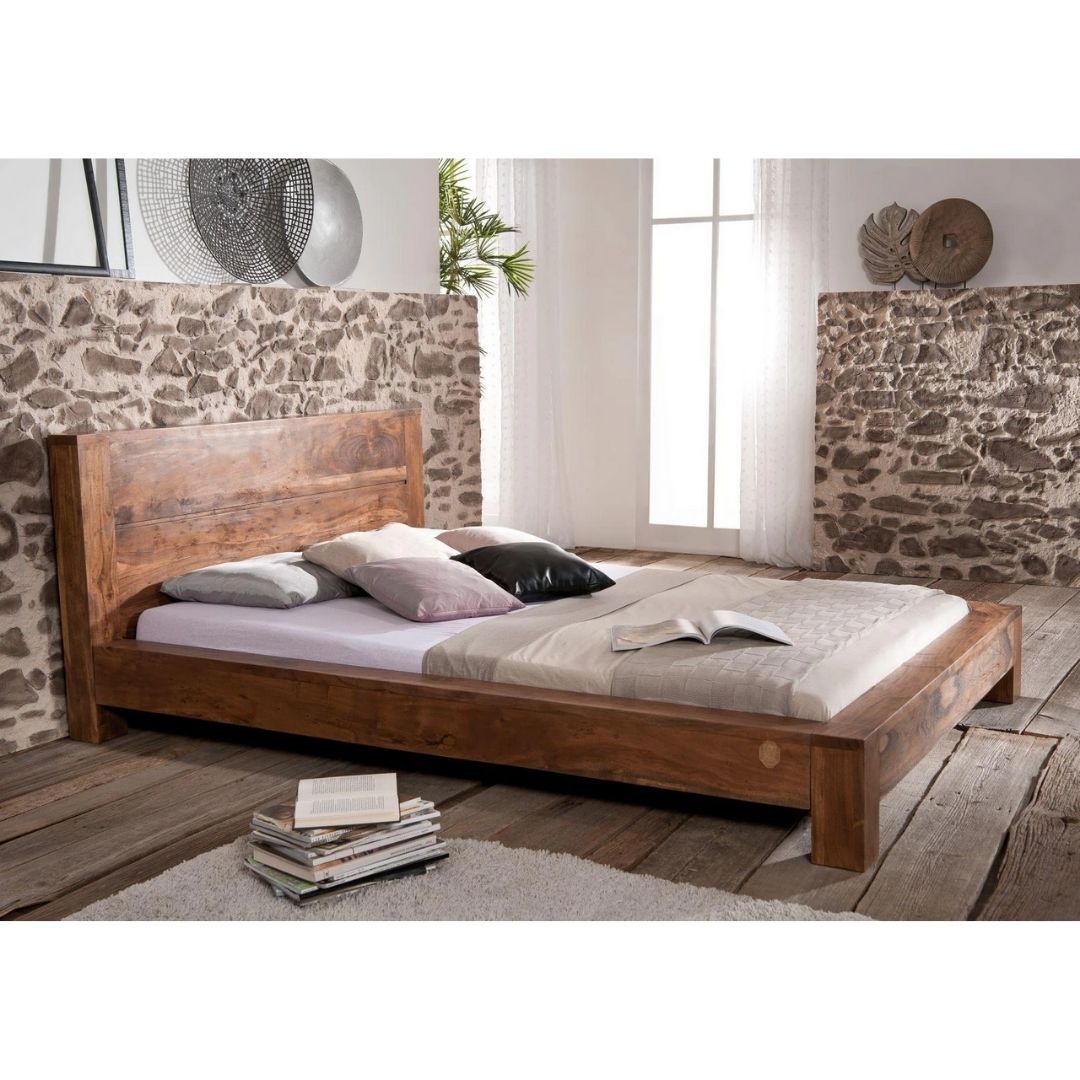 Bonnat Minimalist Acacia Teak-Wood Bed