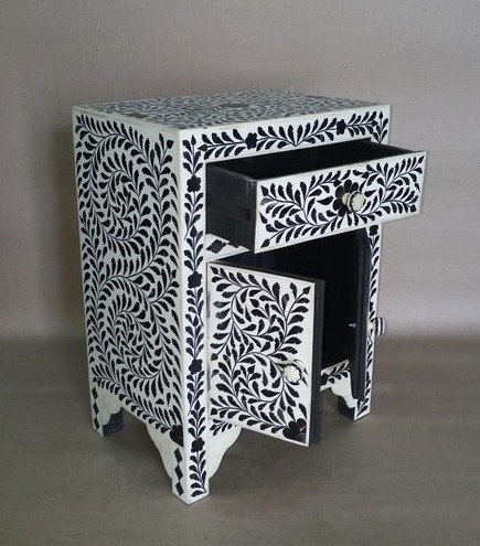 • Striking bone Inlay Bedside Table