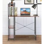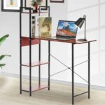 Industrial Metal Factory Brown Open Shelf Bookcase With Table