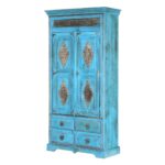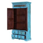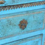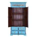 Overlay & Inset Work Solid Wood Brass Cabinet With 4 Drawers Blue-Silver