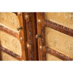 Story: Skillfully handcrafted this brass work bar cabinet by Indian artisans, our Collection’s Indian lines and contemporary, minimalist styling are designed to perfectly complement its practical functionality. Wooden and upholstered tabletops are accentuated by parsons-style solid wood table bases, featuring classic natural finishes designed to easily blend with any décor style.