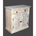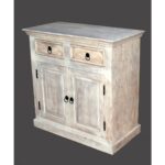 Classic Evergreen Blanc Solid Wood Whitewash Cabinet With 2 Drawers and 2 Doors