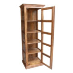 Classic Evergreen Teak Wood Natural Bookshelf with 1 Glass Door and With 5 Shelf