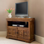 Classic Evergreen Teak Wood Elephant Design TV Unit With 2 Doors and 1 Shelf