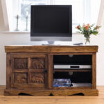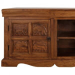 Classic Evergreen Teak Wood Elephant Design TV Unit With 1 Door and 2 Shelf