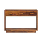 Classic Evergreen Teak Wood Natural Hall Table With 3 Drawers