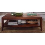 Classic Evergreen Teak Wood Brown 2- Tier Coffee Table