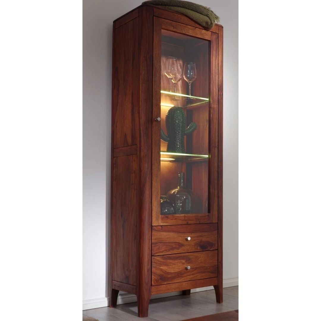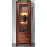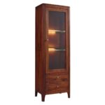 Classic Evergreen Teak Wood Brown Cabinet with Glass Door and 2 Drawers