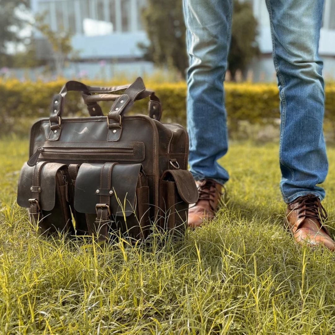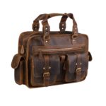 Full Grain Buffalo Leather Briefcase, Leather Laptop Shoulder Bag, Brown Genuine Leather Bag, Cross body Leather Briefcase For Men & Women
