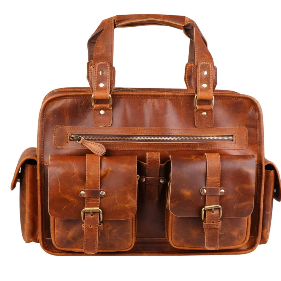 - Latest Luxury Leather Goods CollectionThere are times when its simply nice to have more room: more leg room on a long flight, more room in the garage for extra tools, even more room in a bag to pack a few more items. We offer our rough and tumble Leather Briefcase in a large size for those “more room” scenarios. Same expert craftsmanship and same striking colors, but this one can house up to a 15” laptop, which means there’s also more interior room for those extras some adventures simply require.