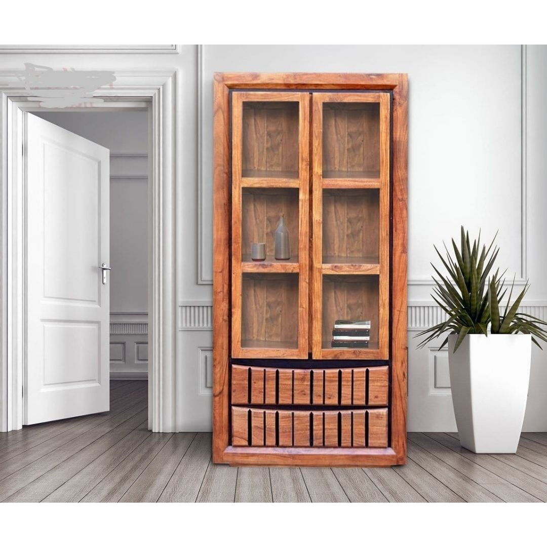 Modern Shutter Solid Wood glass display cabinet