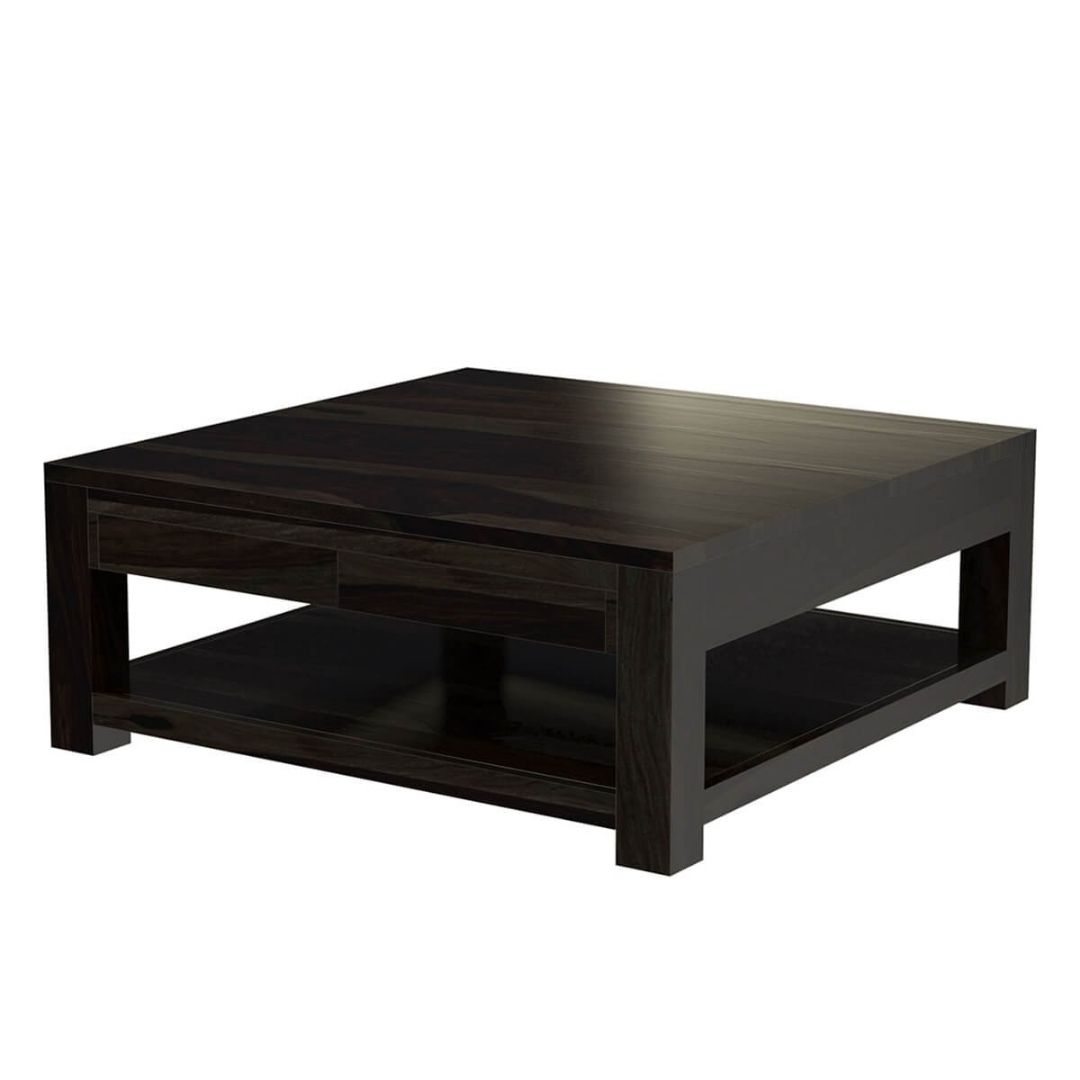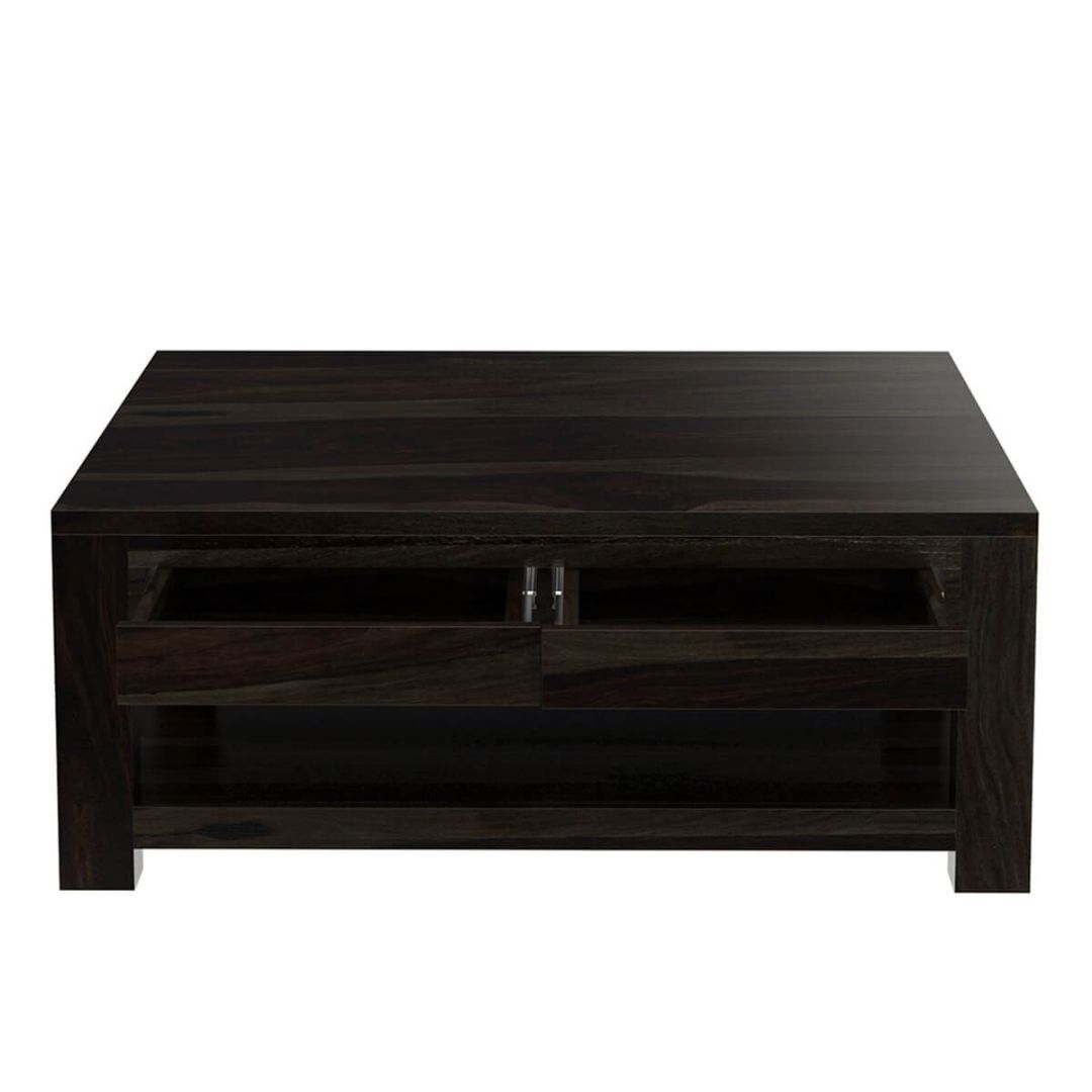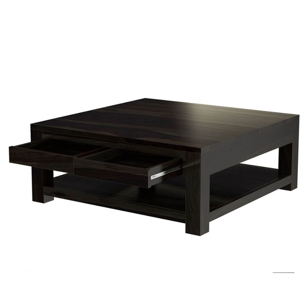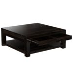 Modern Boston Solid Wood Square Black Coffee Table with 2 Drawers
