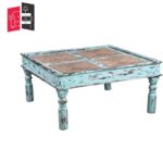 Hand Carved Solid Wood Blue Soraye Jute Coffee Table