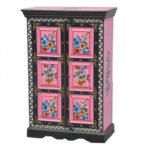 Hand Painted Pandora Solid Wood Cabinet Pink Floral