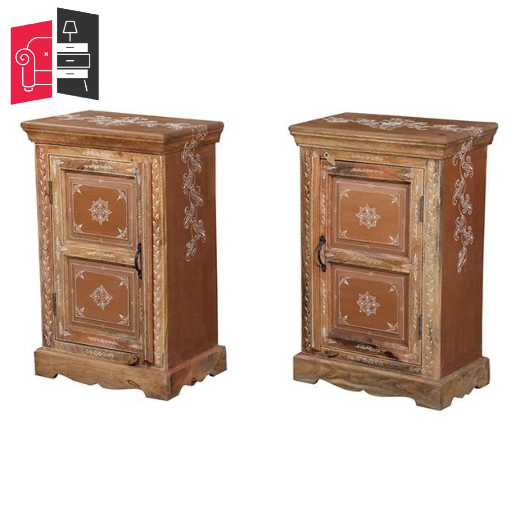 Hand Painted Pandora Solid Wood Floral Pattern Jorges Hand Painted Bedside Table