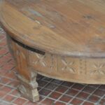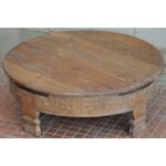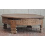 Antiques Solid Wood Tribal Grinder Round Flat Top Natural