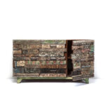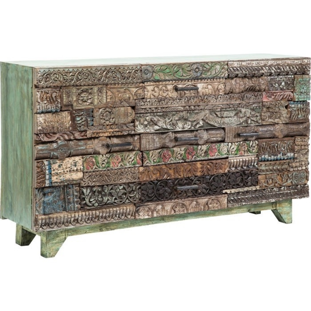 Indian Inspired Tribal Carved Panel Solid Wood Sideboard Buffet Hutch 2 door 3 drawers (2)