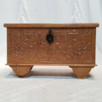 Indian Inspired Tribal Carved Storage Blanket Box Coffee Table Chest Brown