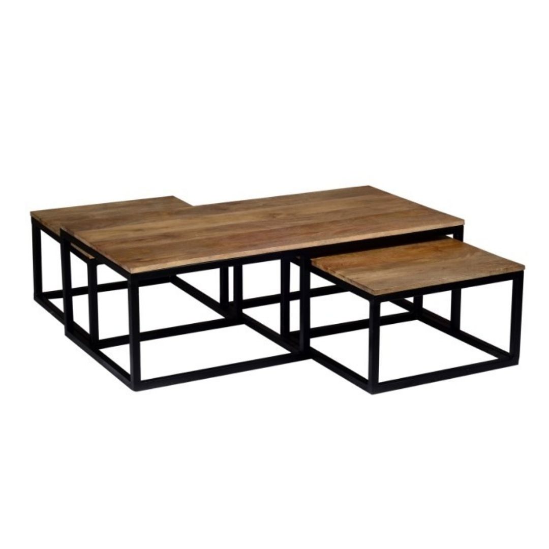 Industrial Lava Solid Wood Nested Coffee Tables