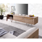 Industrial Lava Solid Wood Universal T.V. Unit With Metal Legs