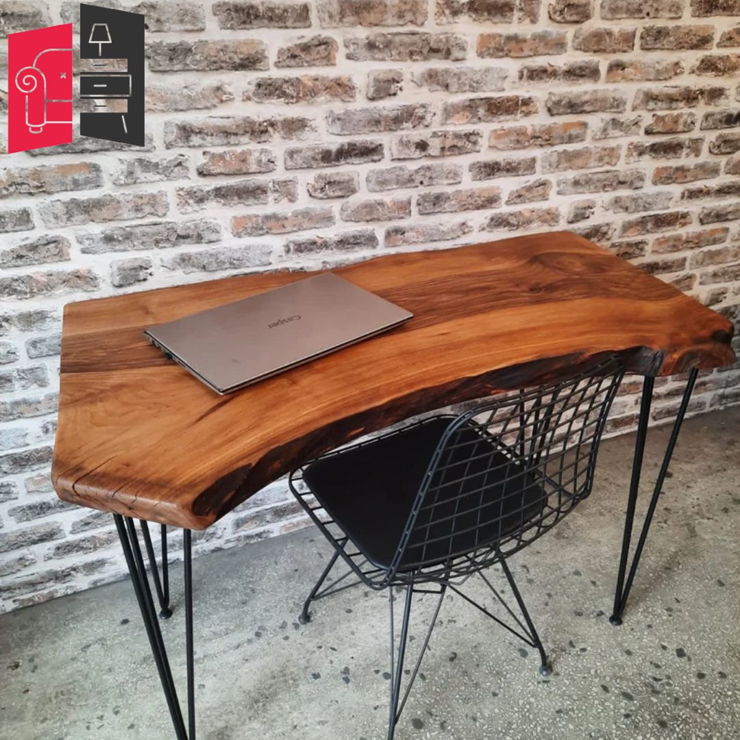 Industrial Live Edge Walnut Table, Custom Walnut Office Wood Desk, Solid Walnut Wood Slab, Working Desk, Hairpin legs