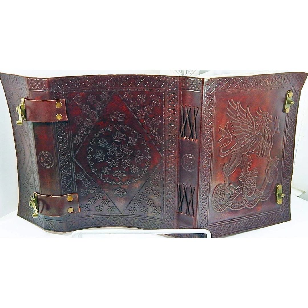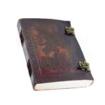 This leather journal is made of full-grain goat leather and this leather is tanned naturally. At the front side of the journal has dragon pattern embossed. This makes it even more beautiful.