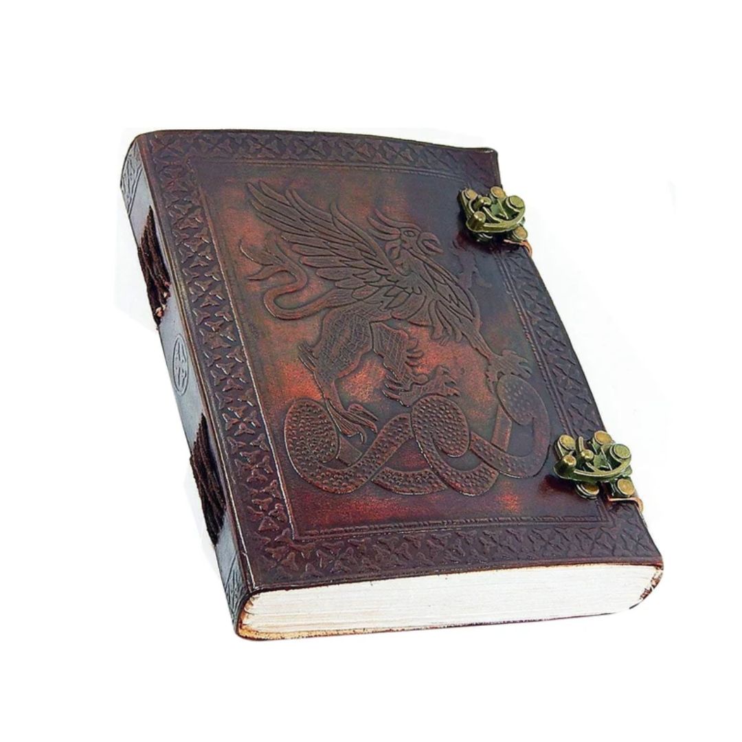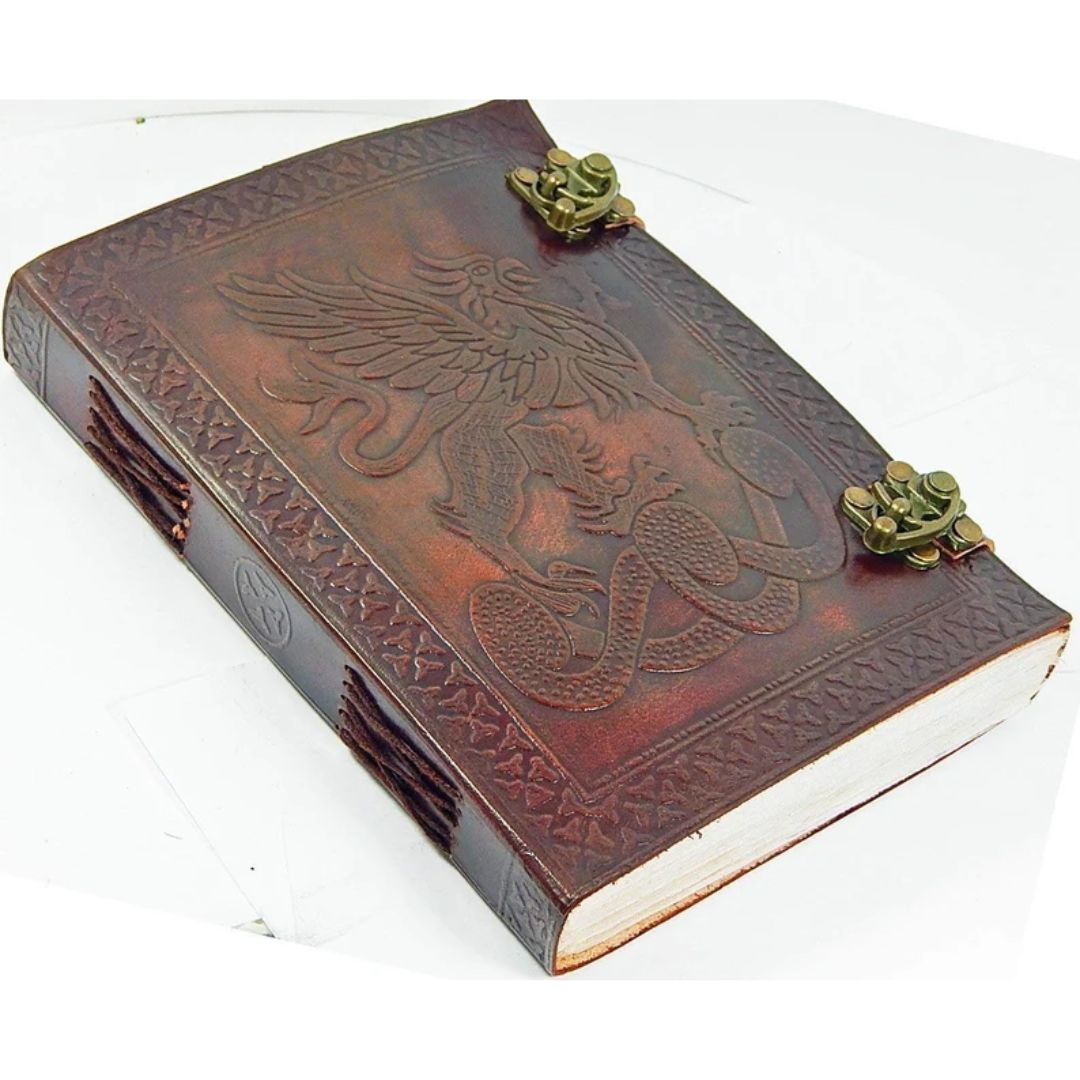 Large Vintage Heart Embossed Leather Journal- Coptic Bound with Lock Closure (Dragon Design) 2 pcs