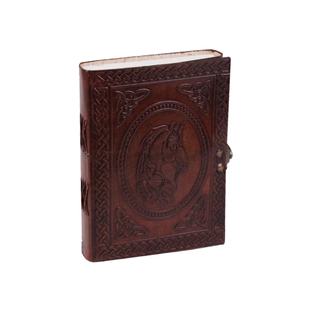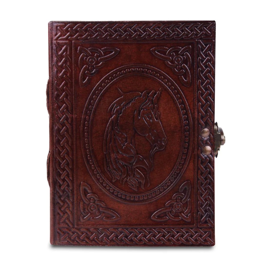 Large Vintage Horse Embossed Leather Journal- Coptic Bound with Lock Closure Personalized Leather Journal Writing Notebook