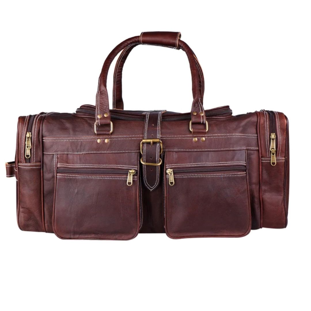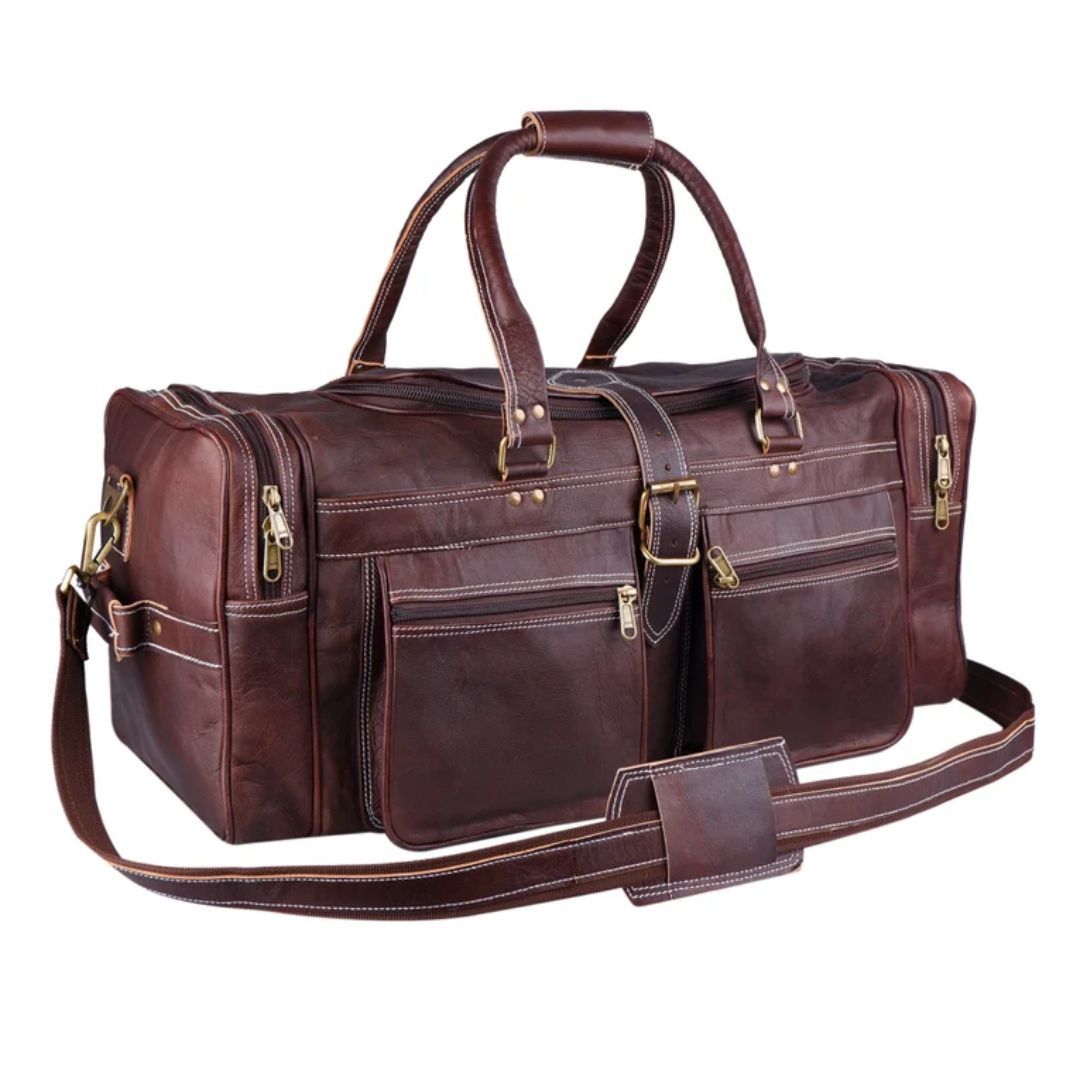 A travel leather duffel bag is a must-have accessory in a men’s wardrobe. Carry your travel essentials in a trendy and comfortable way with this premium full-grain buffalo leather duffel bag for an overall sophisticated look.