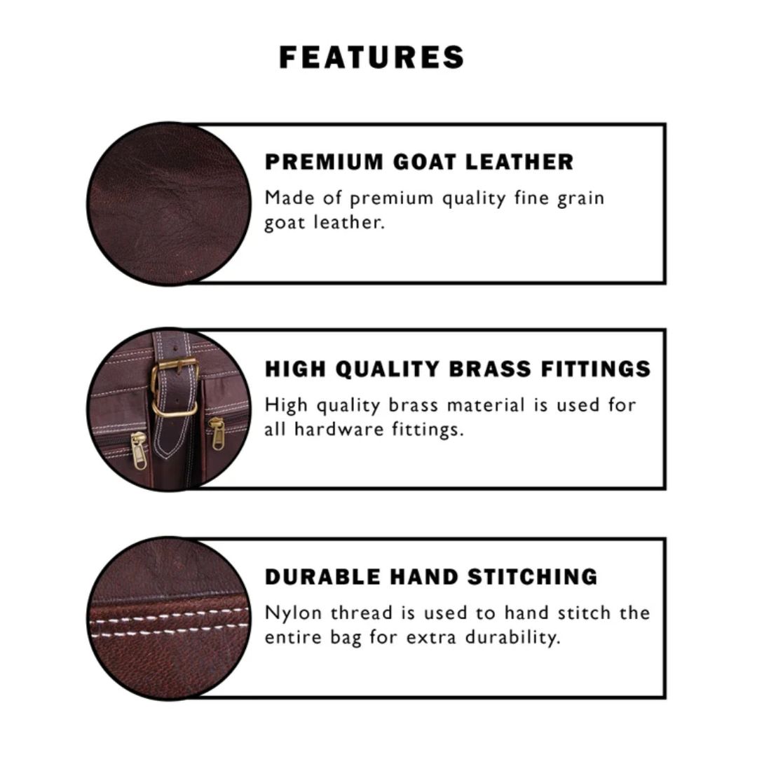 • High-quality brass hardware and YKK zippers.