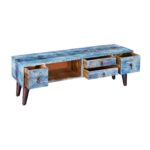 Modern Bonnat Indian Solid Wood Blue TV Unit With 4 Drawers 1 Shelf