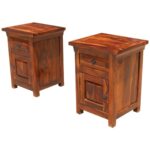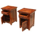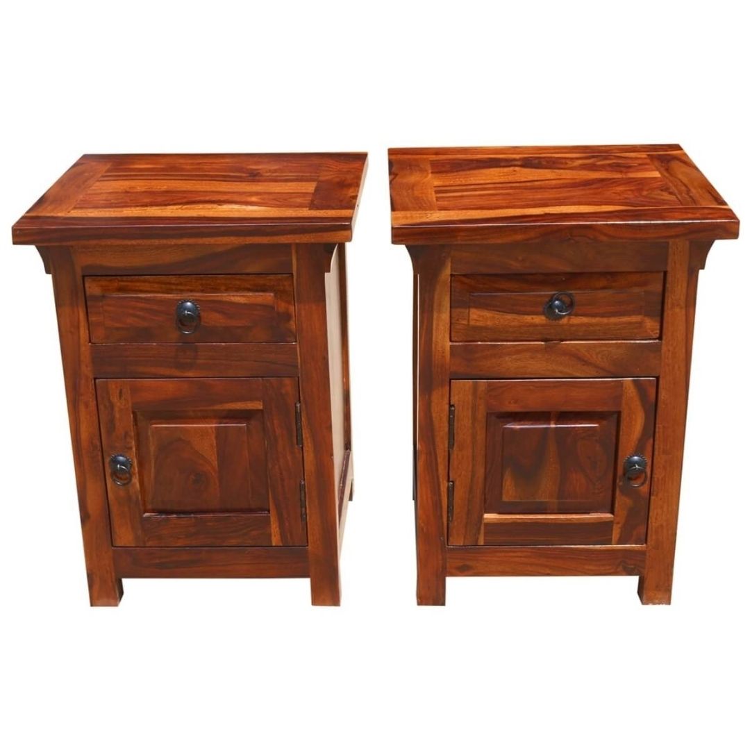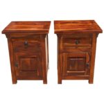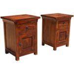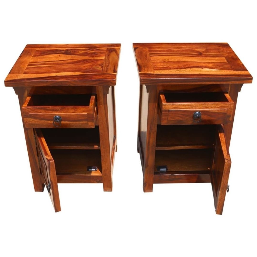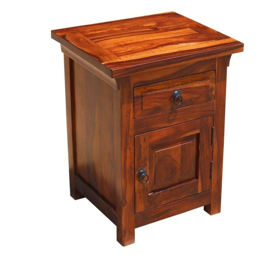 Bonnat Indian Solid Teak-Wood Brown Bedside Table With 1 Drawer and 1 Door