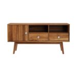 Modern Bonnat Solid Wood Natural TV Unit With 1 Door and 2 Drawers and 2 Shelf