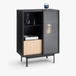 Modern Bonnat Solid Wood Cabinet With 1 Drawer and 1 Glass Door and 3 Shelf