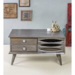 Modern Boston Solid Wood Printed Coffee Table with 2 Drawers and 1 Shelf
