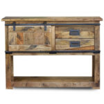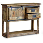 Modern Chrome Slider Industrial Console Hall Table With Sliding Doors and 2 Drawers