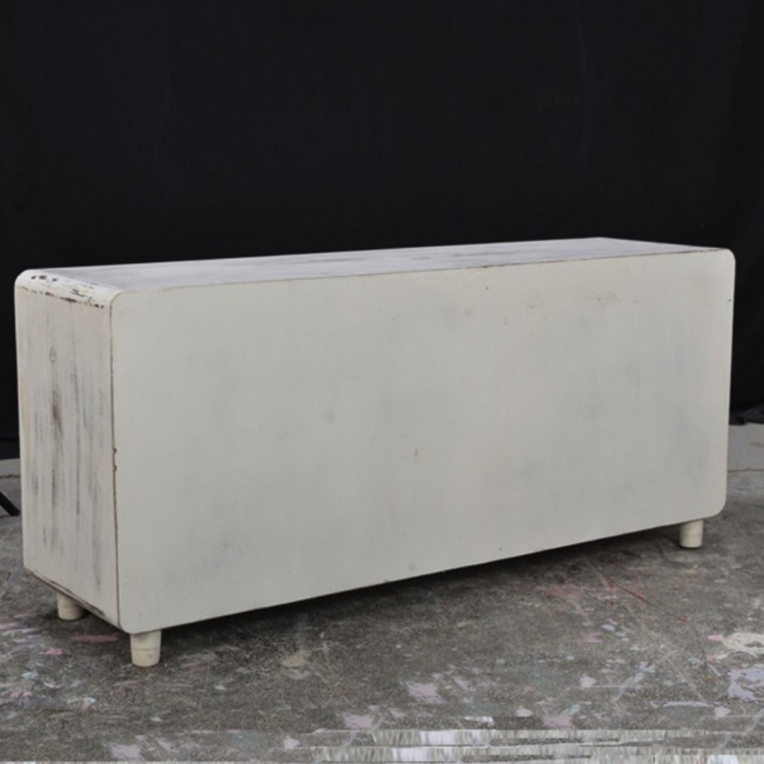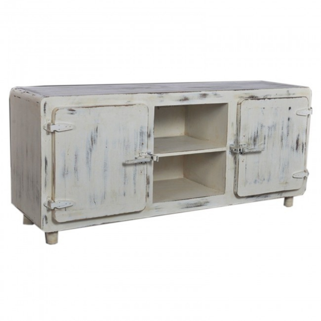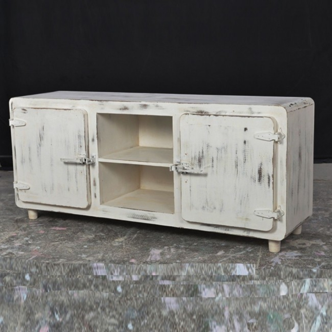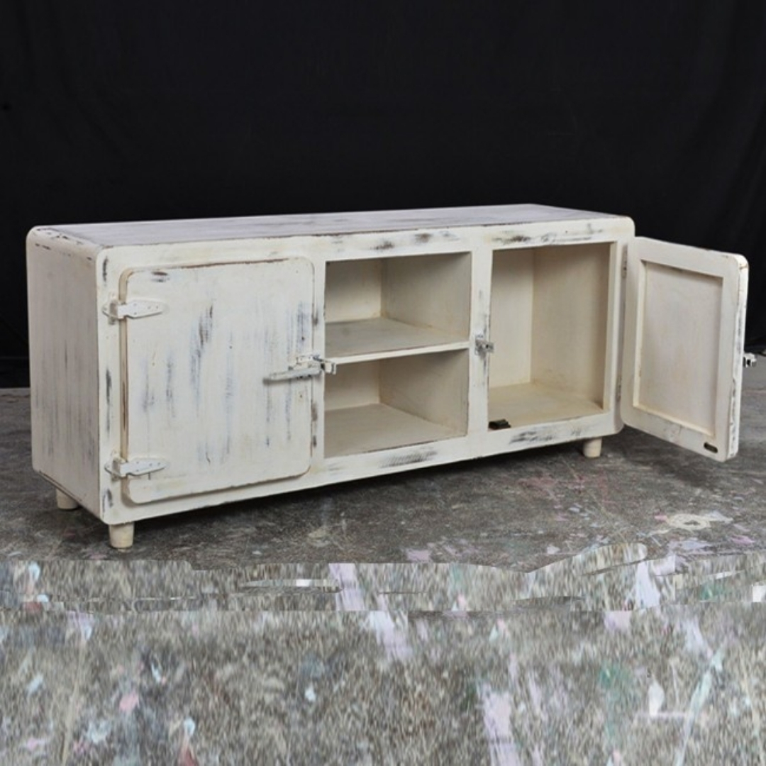 Chrome Solid Teak-Wood Whitewash TV Unit With 2 Doors and 2 Shelf Doors