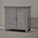 Modern Shutter Solid Wood Small Cabinet Sideboard Grey 2 Door