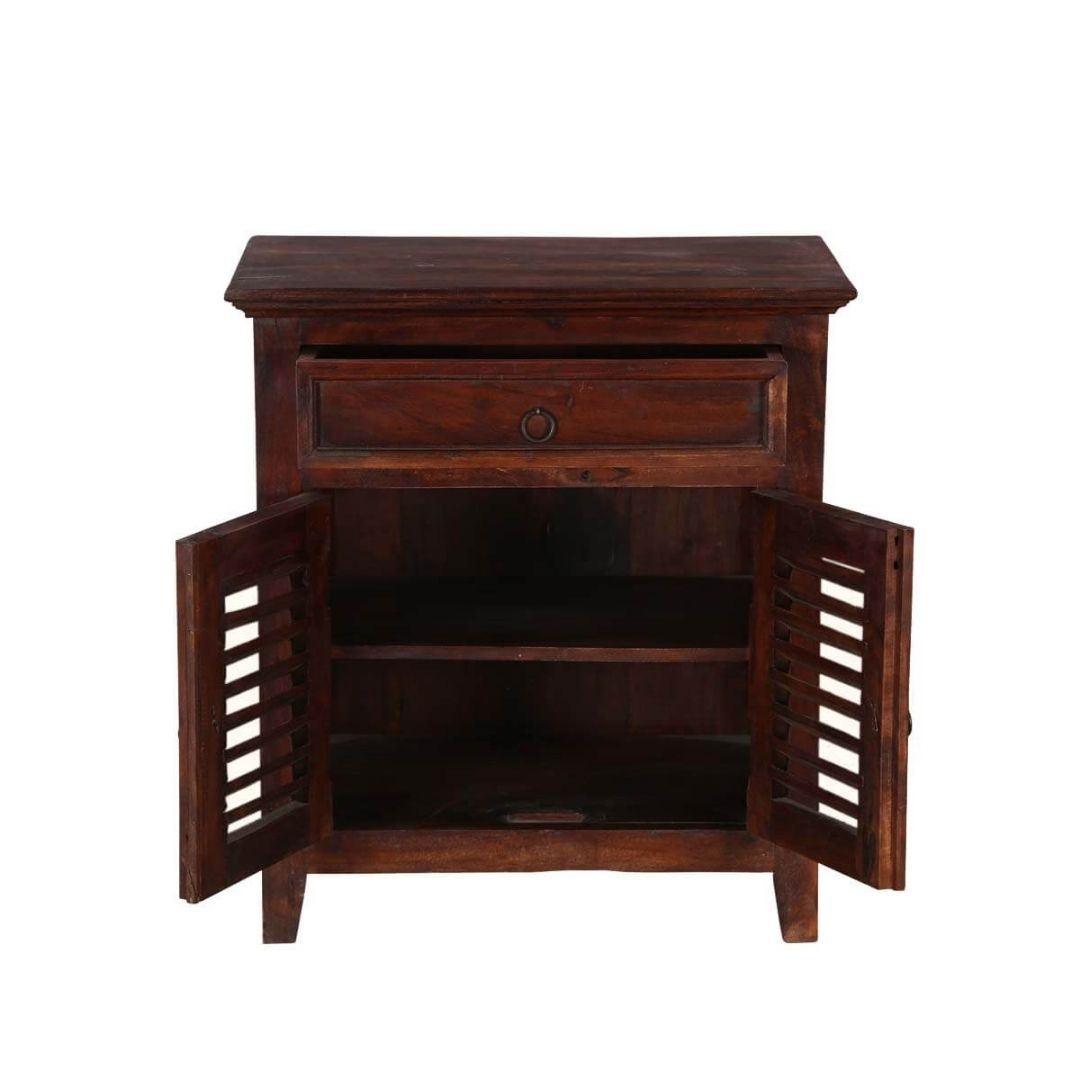 Modern Shutter Solid Wood TV Unit With 2 Doors 1 Drawers Chocolate