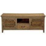 Modern Shutter Solid Wood TV Unit With 2 Doors 1 Drawer
