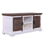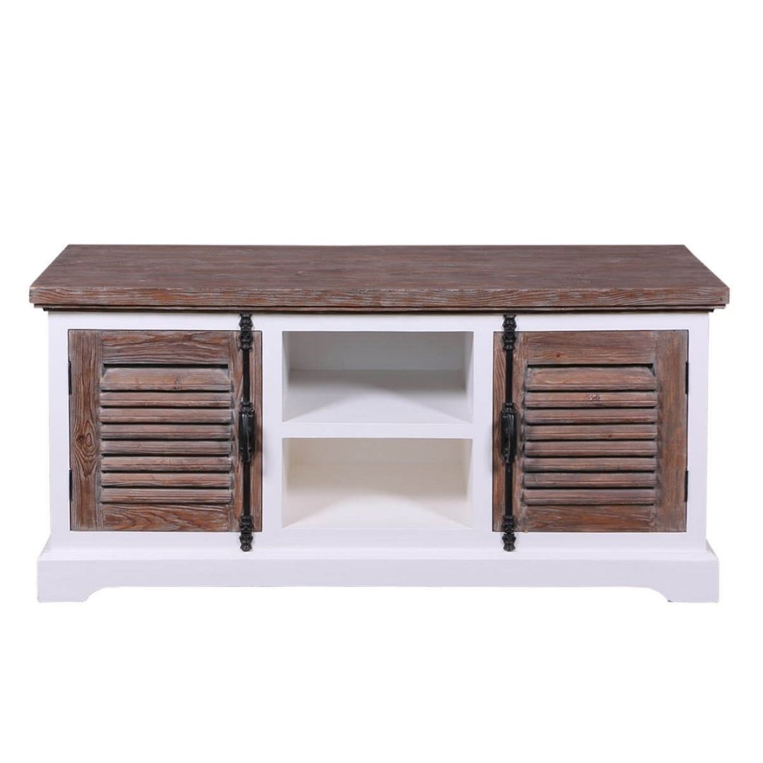 Modern Shutter Solid Wood TV Unit With 2 Doors 2 Drawers Flat Top Small