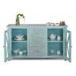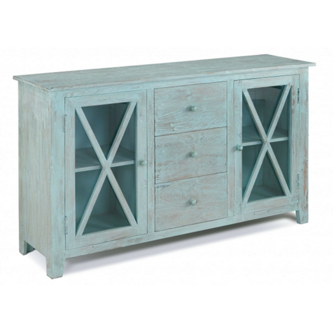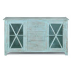 Modern Shutter X Design Solid Wood 3 Drawer 2 Door Sideboard Blue
