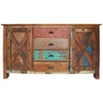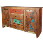 Modern Shutter X Design Wood 4 Drawers Large Buffet Sideboard